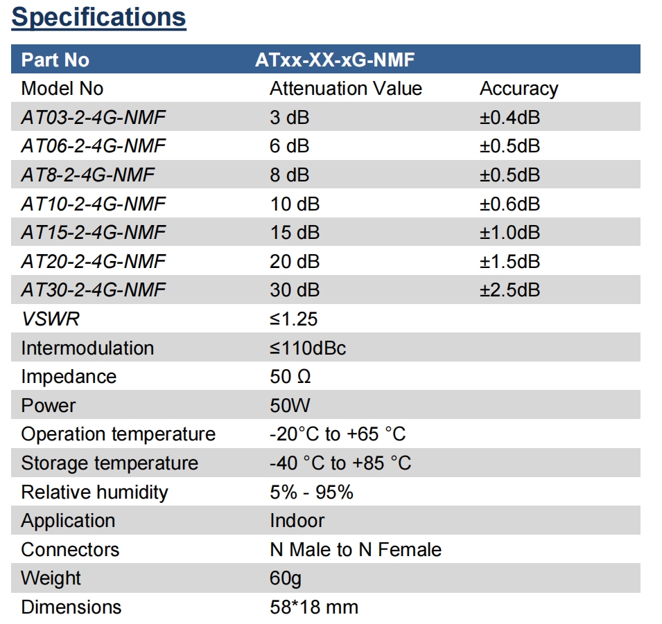 - Product description: Attenuator 2W DC-4GHz N Type